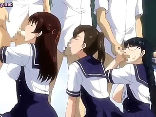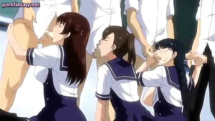 Sultry anime babes sucking cocks