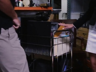 Sexy blonde milf fucked by pawn keeper in storage room