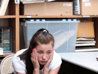 Shoplifter teen caught blowjob fucked on table