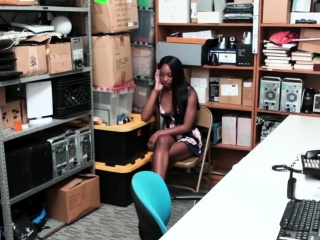 Ebony shoplifters fuck security officer