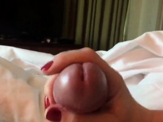 Handjob POV babe jerks lover dong