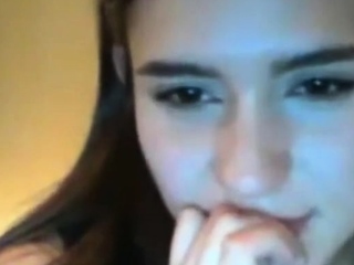 Brunette teen rubs clit on webcam