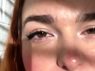 Submissive redhead amateur gives head and gets a facial