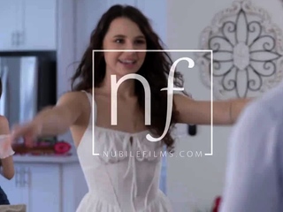 Brunette stepteens banged in threeway