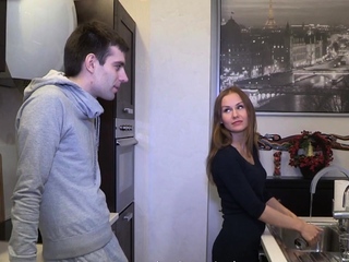 Frisky young brunette gal Alena blows...
