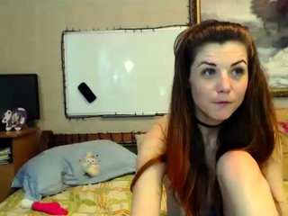 Emo teen redhead toying on webcam