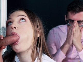 Teen Slut Serves Her Stepbro And Stepdad At The Same Time