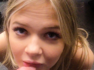Amateur brunette teen with small boobs gives hot blowjob