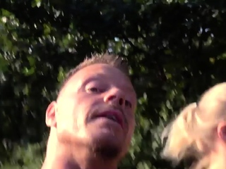 Pierced blonde babe cockriding in public