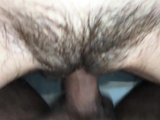 Hairy Pussy Fucked Hard with a Big Cock and Filled with Cum