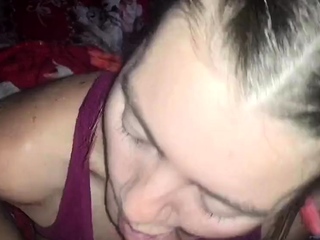Blindfolded Brunette Babe Blowjob, Bondage Cumshot
