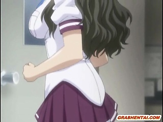Virgin Japanese hentai gets squeezed her bigtits and