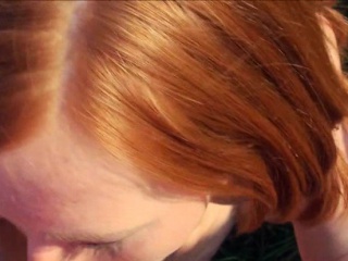 Redhead teen outdoor with cum in mouth